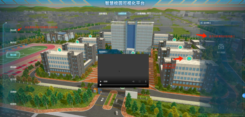 安放管理:用户可以通过点击建筑上方的图标来查看我们的监控画面。