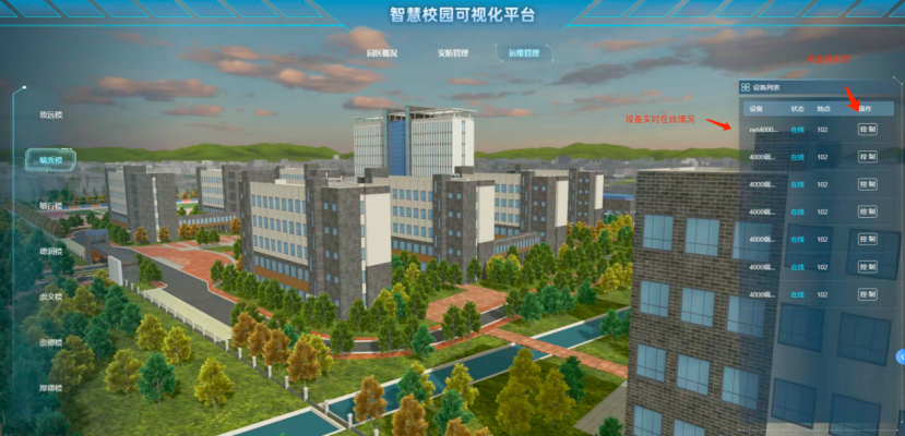 运维管理:用户通过此模块,实现对设备在线离线实时监控,同时也可以通过此模块发现故障设备,实现对相关设备的控制。