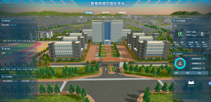 园区概括:用来统计与展示系统设备数据信息,服务信息,刷卡信息等。
